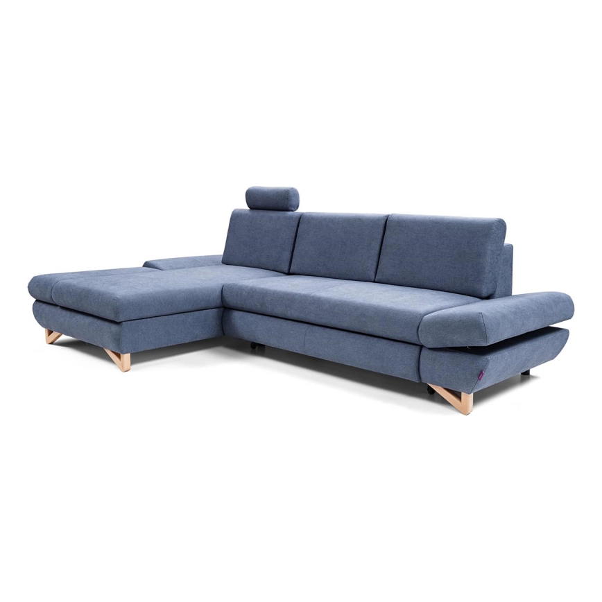 Bäddbar klädd hörnsoffa i L‑form AVESTA, vänster, med förvaringsutrymme, blå | Alasans