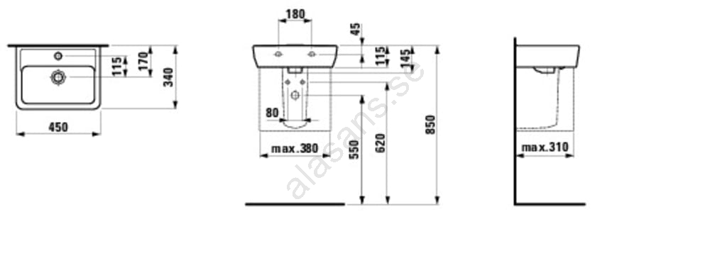 LAUFEN H8119510001041 - Tvättställ för bänkskiva/väggmonterat PRO 45x34 cm keramik/vit | Alasans