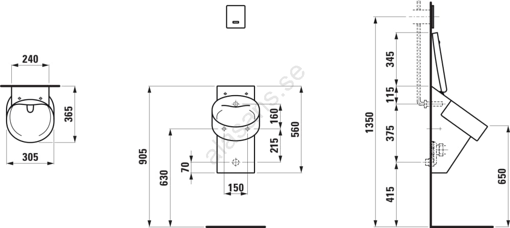 • Pissoaren är försedd med monteringshål för lock (ingår ej).