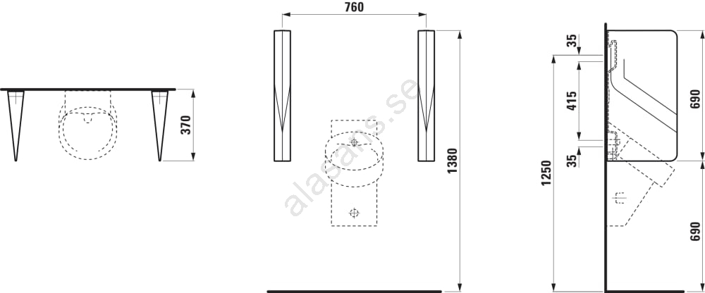 LAUFEN H8472800200001 -Pissoaravskiljare VAL 69x37 cm keramik/blank svart | Alasans