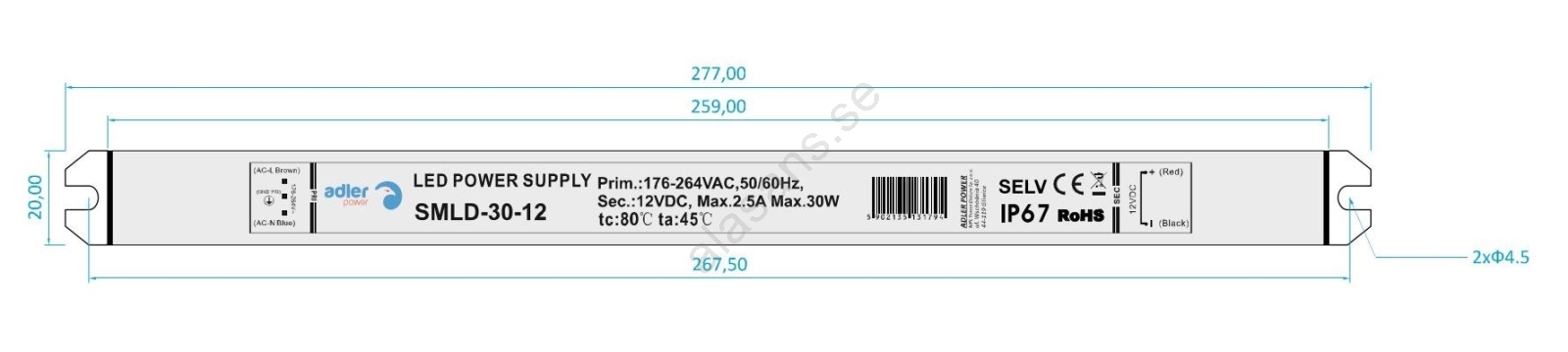 LED Elektrisk transformator DRIVER 30W/230V/12V IP67 | Alasans