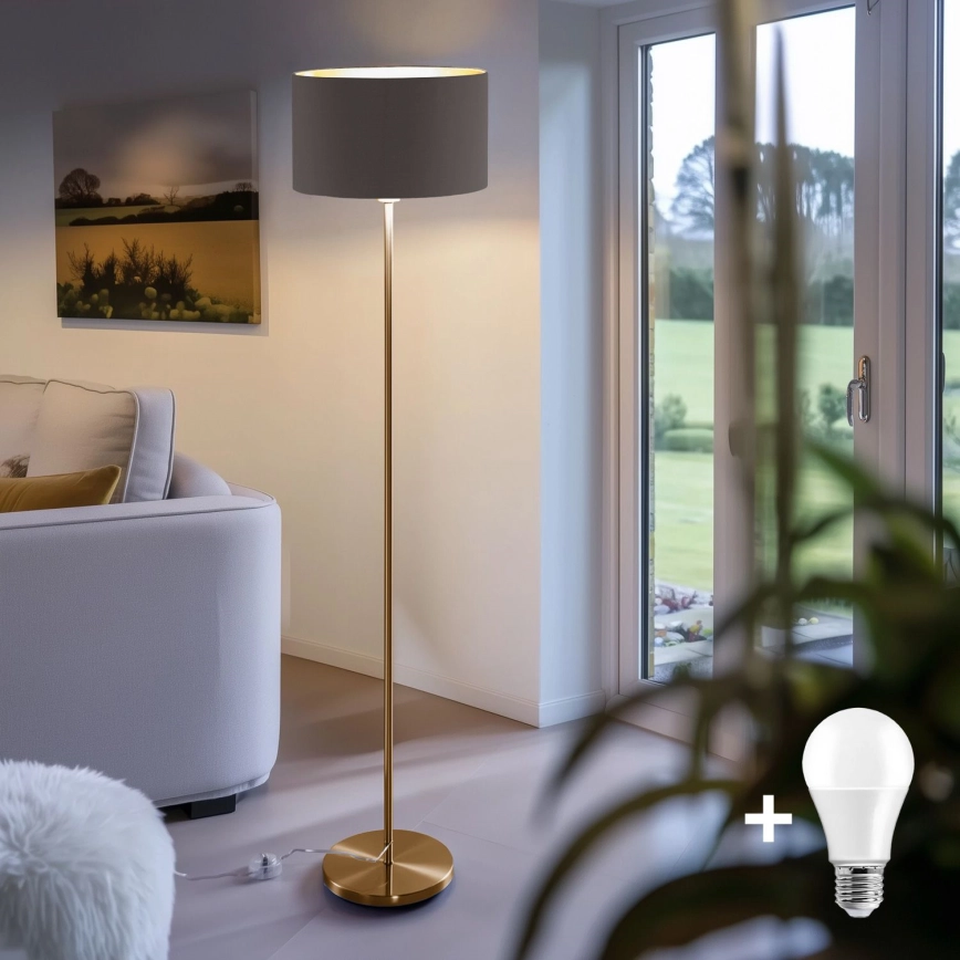 • LED-golvlampa TUNJA 1xE27/20W/230V Ø 38 cm guld/grå