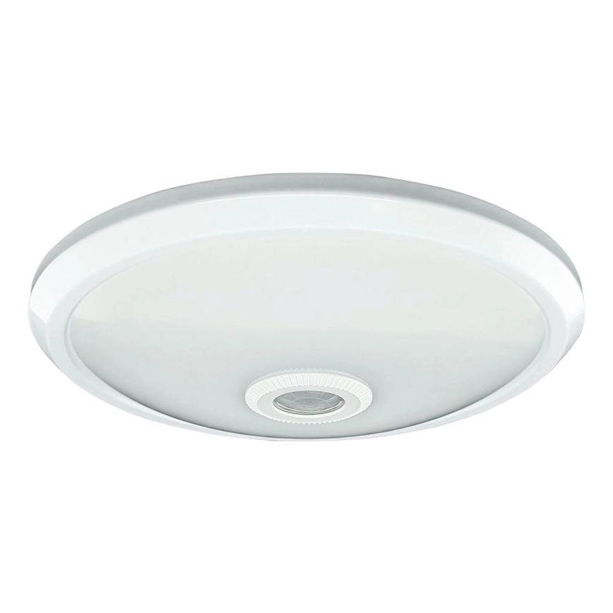 • LED takarmatur med rörelse- och skymningssensor samt nödbelysningsmodul MANA LED/12W/230V 1500 mAh Ø 29 cm vit