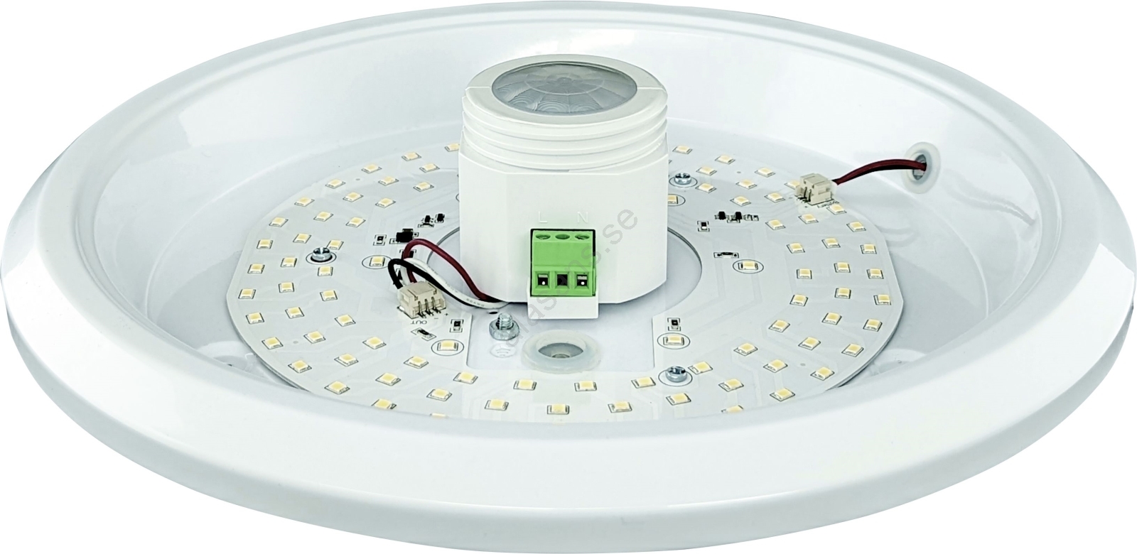 • LED-takarmatur med rörelse- och skymningssensor samt nödbatterimodul MANA LED/16W/230V, 1500 mAh, Ø 29 cm, vit