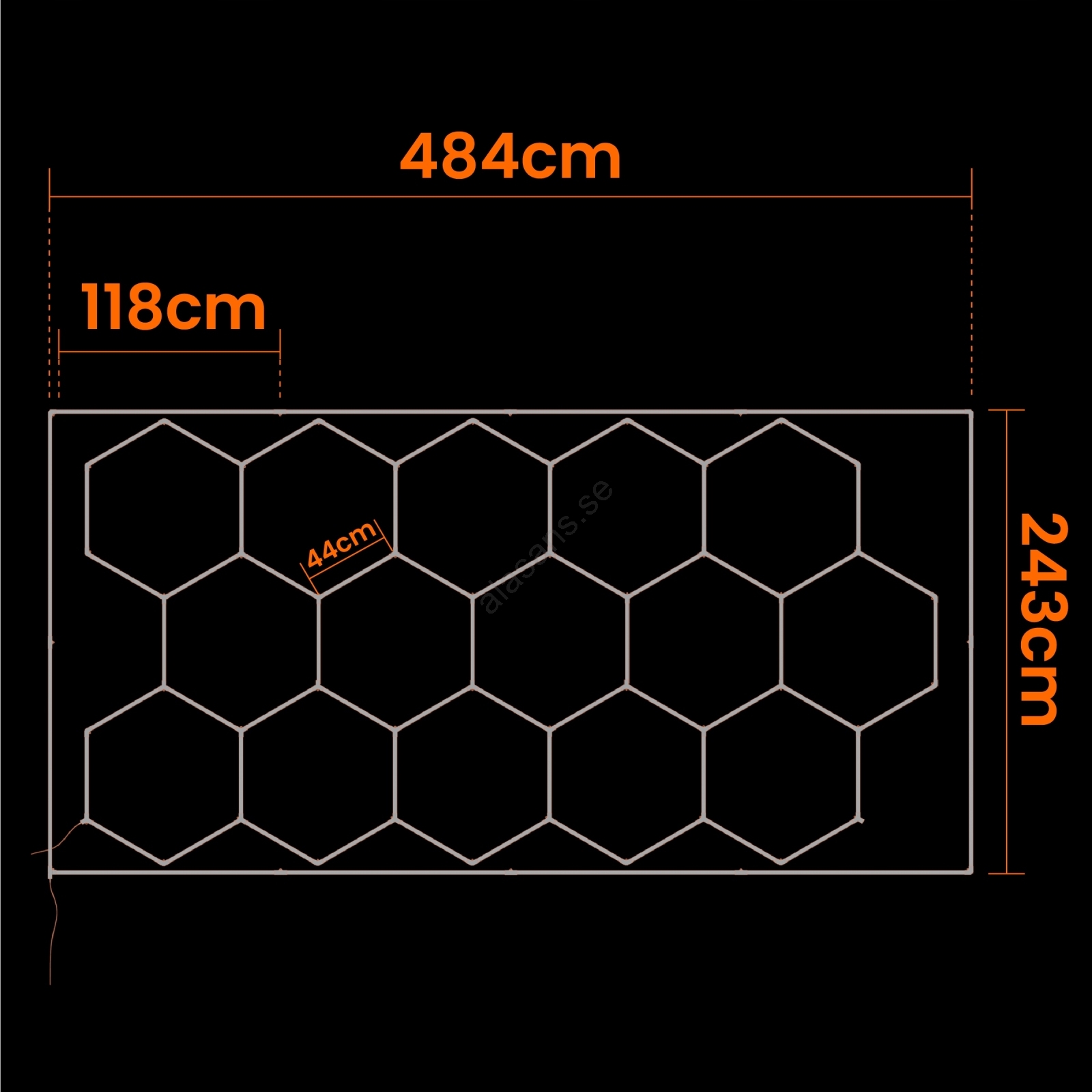 • Rammått: 484 x 243 cm — täcker en stor yta utan behov av separata armaturer.
