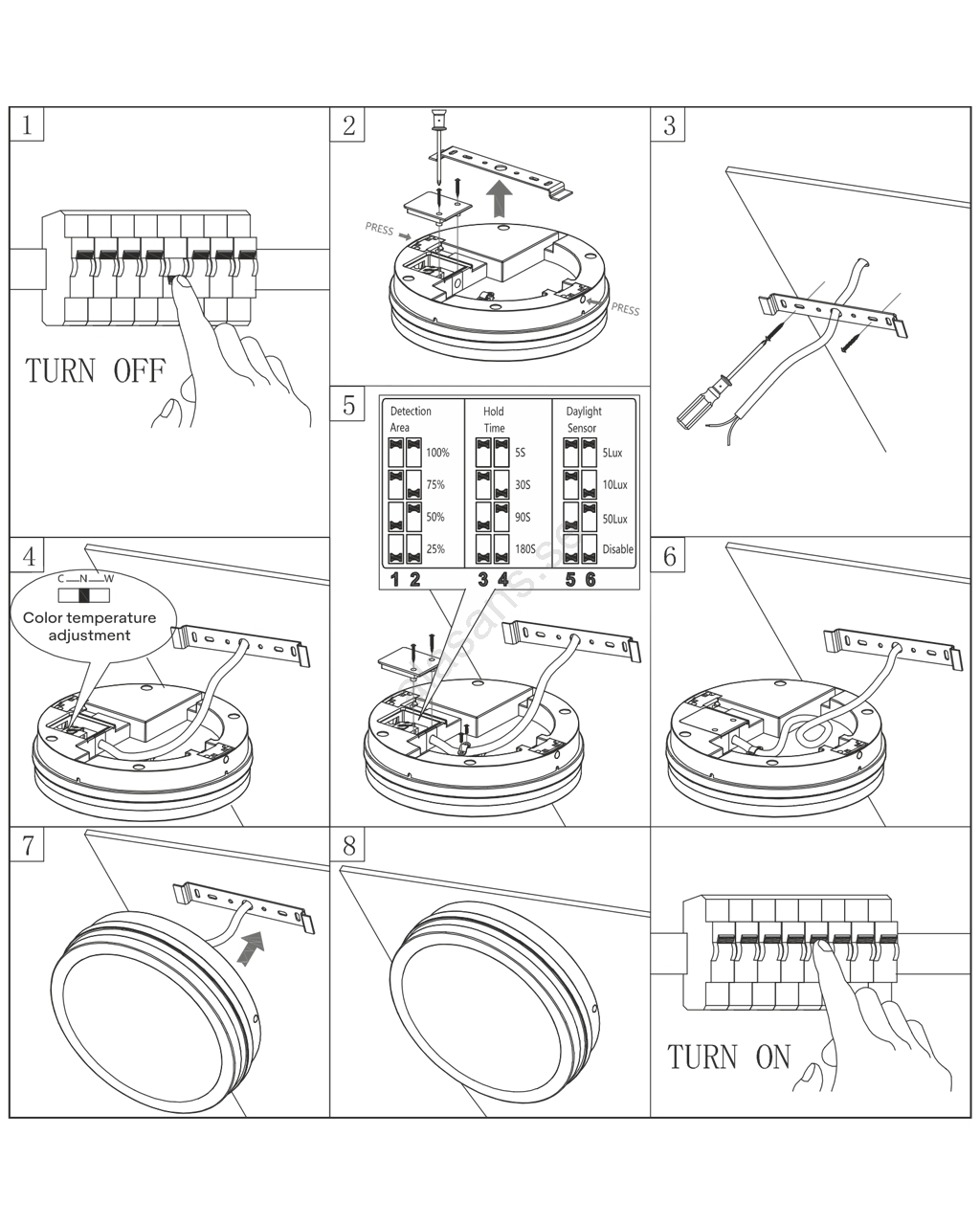 • Justering av skymningssensor: AV; 5 - 50 lx.