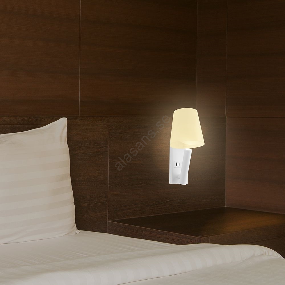LED-vägglampa med USB-port LED/2W/230V 3000K vit | Alasans