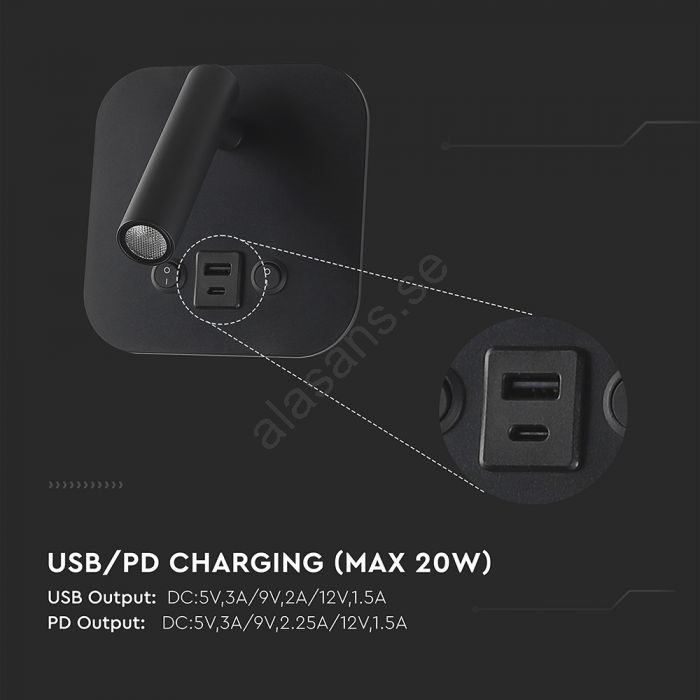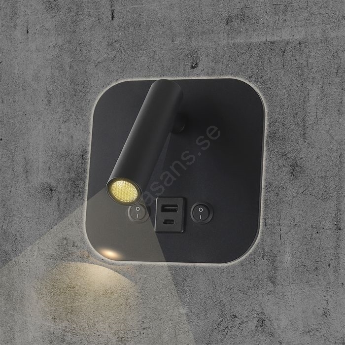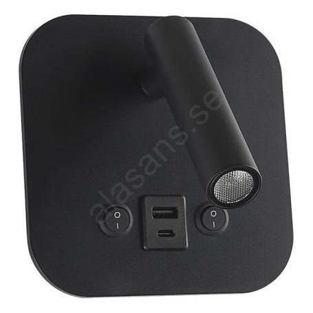 LED väggspot med USB-port LED/8W/230V 3000K svart | Alasans