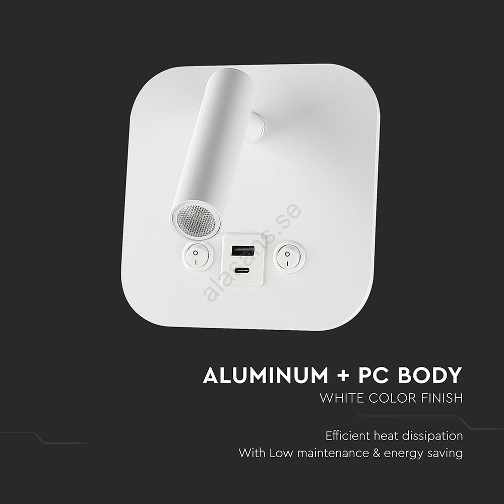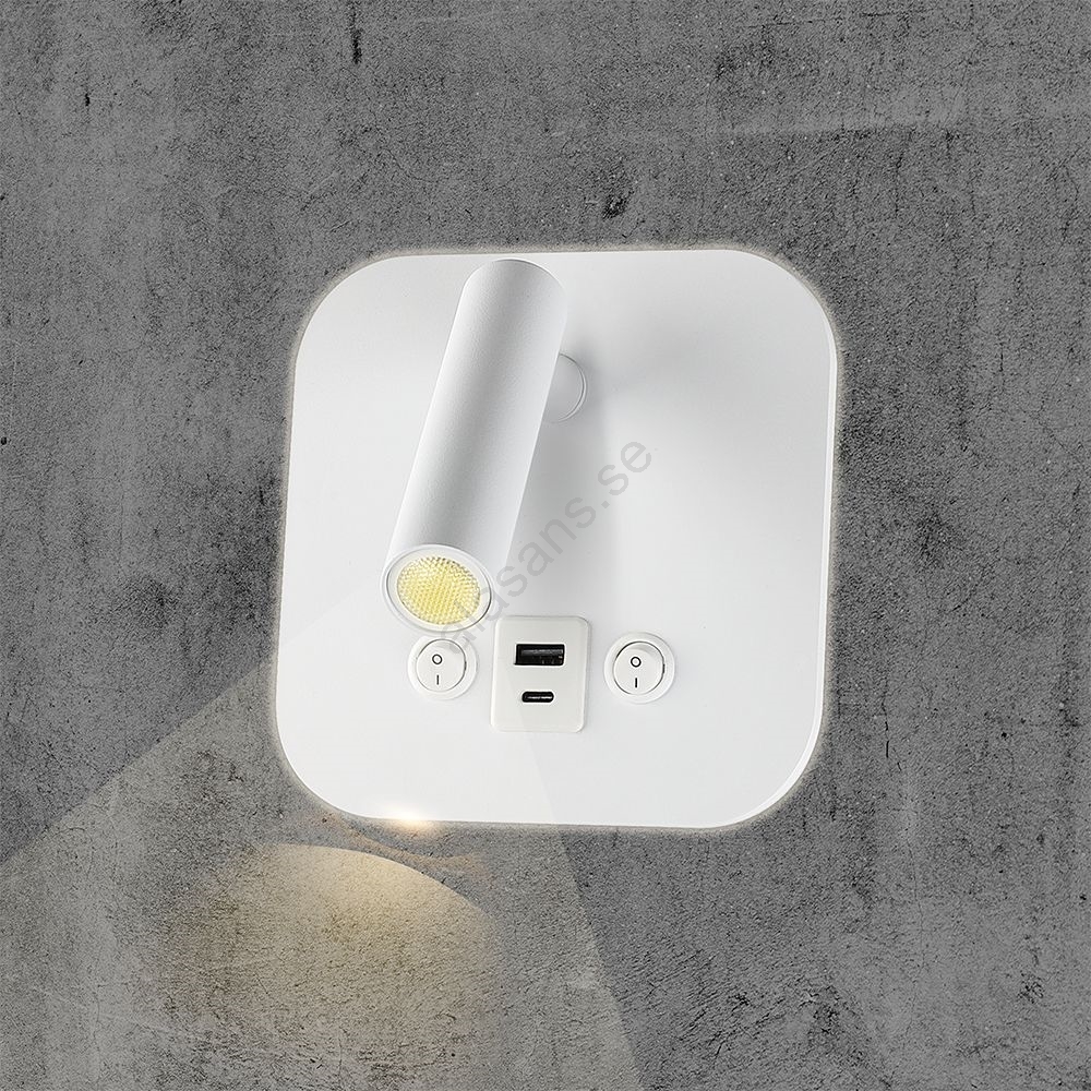 LED väggspot med USB-port LED/8W/230V 3000K vit | Alasans