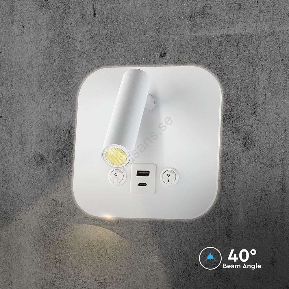 LED väggspot med USB-port LED/8W/230V 3000K vit