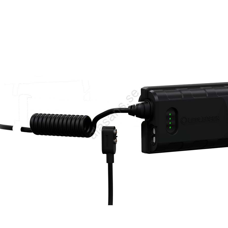 • Paketet innehåller: pannlampa LEDLENSER H5R Work, uppladdningsbart Li-ion-batteri, magnetisk laddkabel, hjälmklämmor, extra fokusring, genomskinligt silikonpannband.