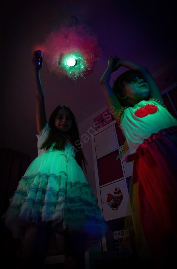 • Erbjuder fyra ljusfärger – vitt, rött, grönt och blått – samt ett blinkande läge som förgyller varje barnkalas eller kvällslek.