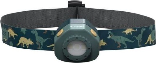 Ledlenser KIDLED4R DINO - LED-pannlampa för barn, dimbar och uppladdningsbar, IPX4, 40 lm, 18 h, grö