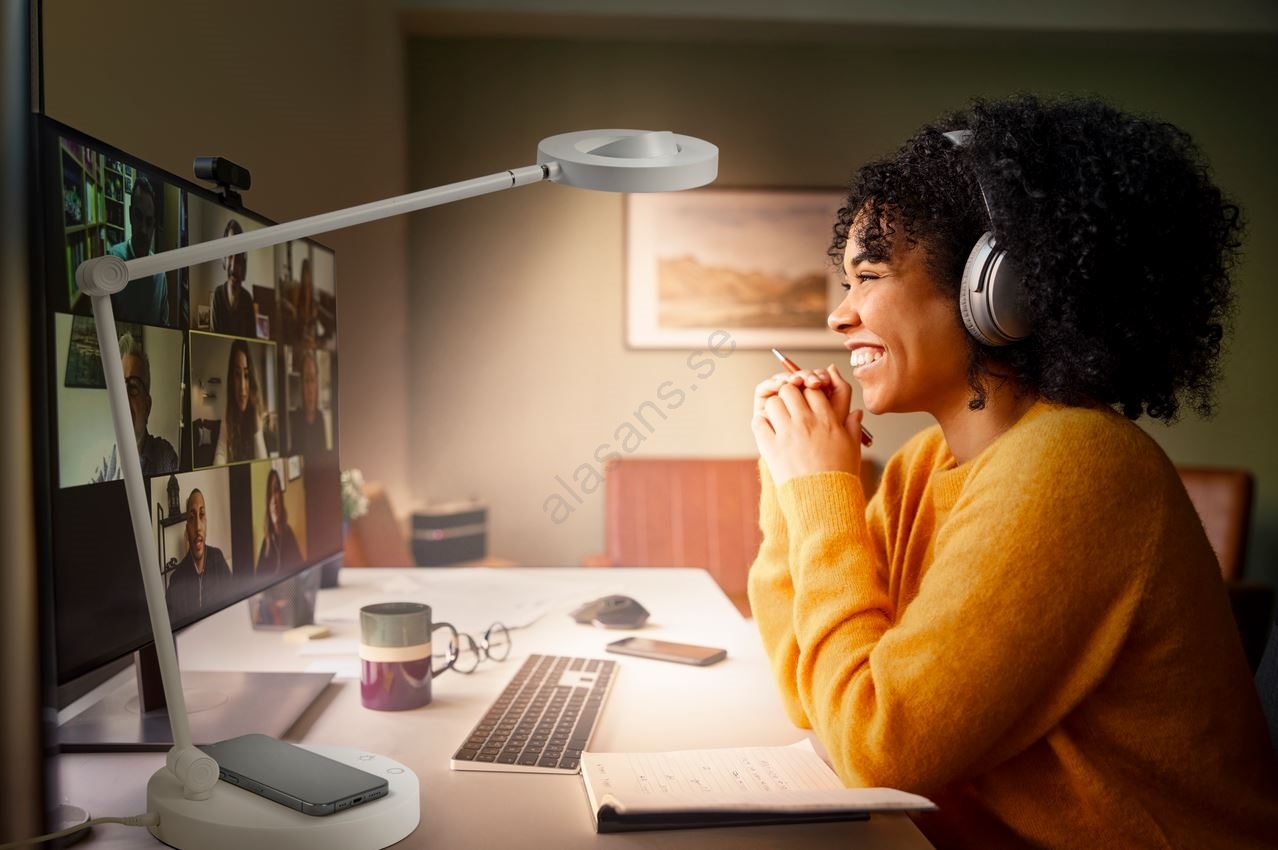 • LED skrivbordslampa med justerbar ljusstyrka och färgtemperatur.