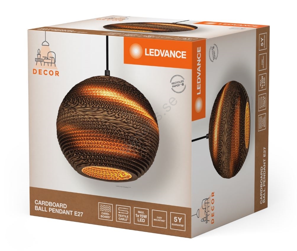 Ledvance - Ljuskrona med textilsladd DECOR CARDBOARD 1xE27/15W/230V diameter 26 cm kännetecknar snygg och funktionell design. En glödlampa med E27 lock är lämplig för lampan. Här kan du köpa andra glödlampor till förmånliga priser. Du kommer att få ett intressant tillägg till ditt hem.