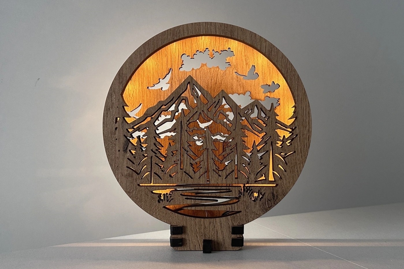 Li-Go 23583/DUB2 - Dimmbar LED-bordsdekoration LED/12W/230V 20x22 cm ek/Berg och skog