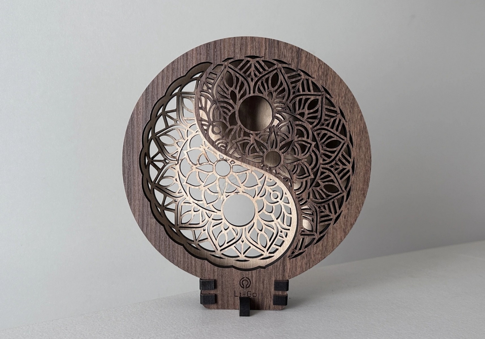 Li-Go 23607/O - Dimbar dekorativ LED-bordslampa LED/12W/230V 20x22 cm valnöt/Yin Yang