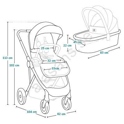 • Kombinerad barnvagn 2 i 1: rymlig liggdel och sittdel från nyfödd upp till ca 4 år.