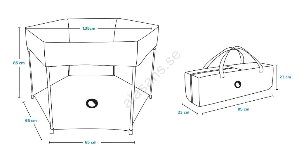 • Lekhagen levereras med en reseväska med praktiskt handtag för enkel transport.