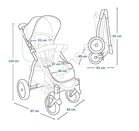 • Barnvagnen är utrustad med en rymlig förvaringskorg för shopping eller leksaker.