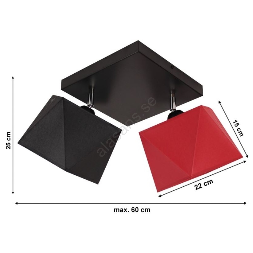 Ljuskrona DIAMENT 2xE27/60W/230V svart-röd kännetecknar snygg och funktionell design. En glödlampa med E27 lock är lämplig för lampan. Här kan du köpa andra glödlampor till förmånliga priser. Du kommer att få ett intressant tillägg till ditt hem.