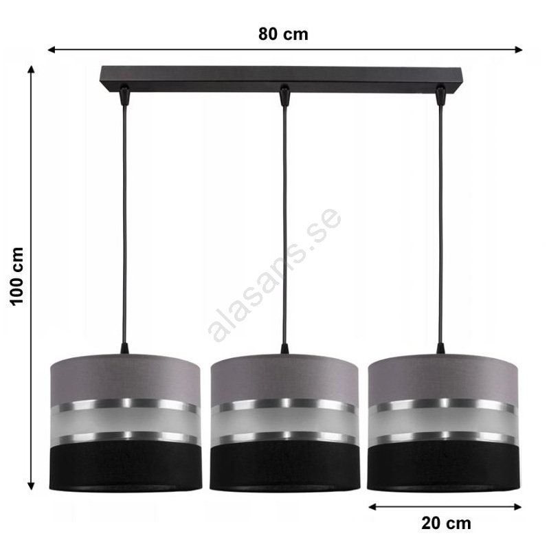 Ljuskrona med snöre CORAL 3xE27/60W/230V svart och grå | Alasans