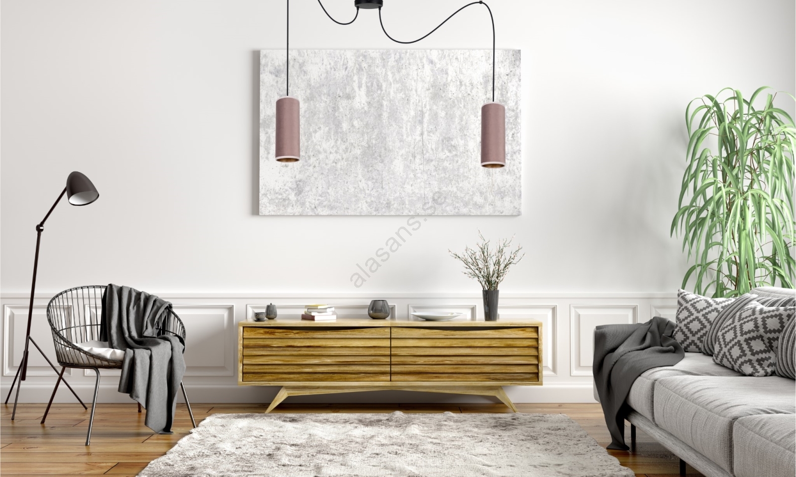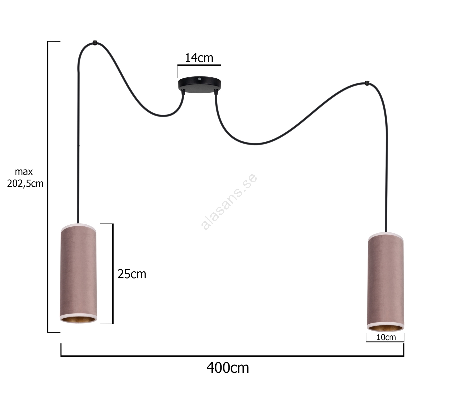 Taklampa AVALO 2xE27/60W/230V rosa/koppar, på lina | Alasans