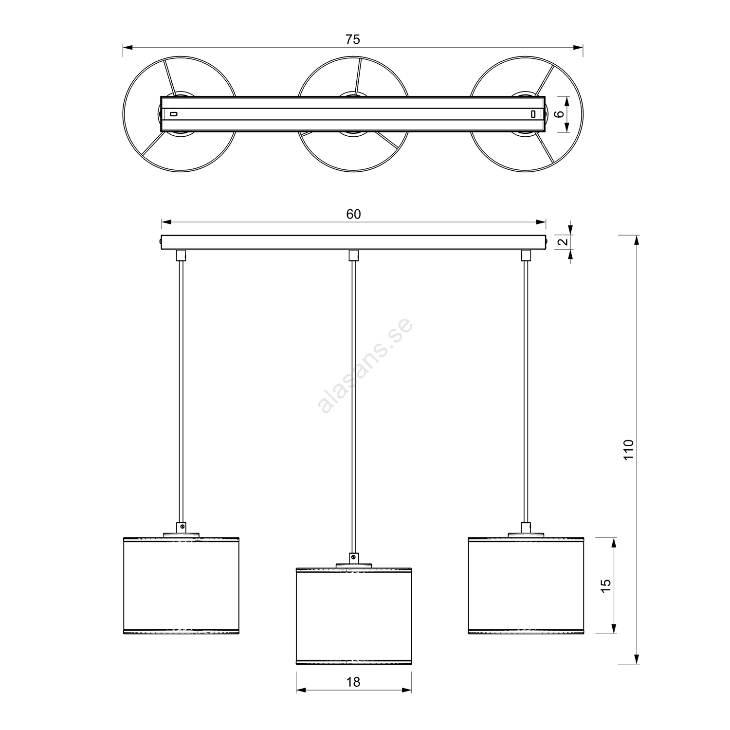 • Taklampa på kabel LOFT SHADE 3xE27/60W/230V svart