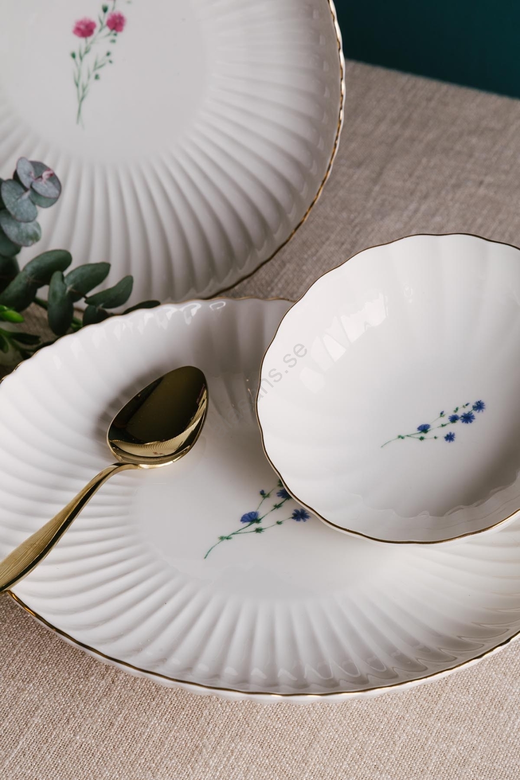 Matservis i porslin, 27 delar, vit/guld | Alasans