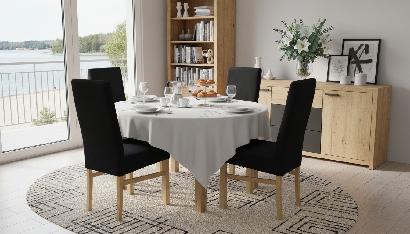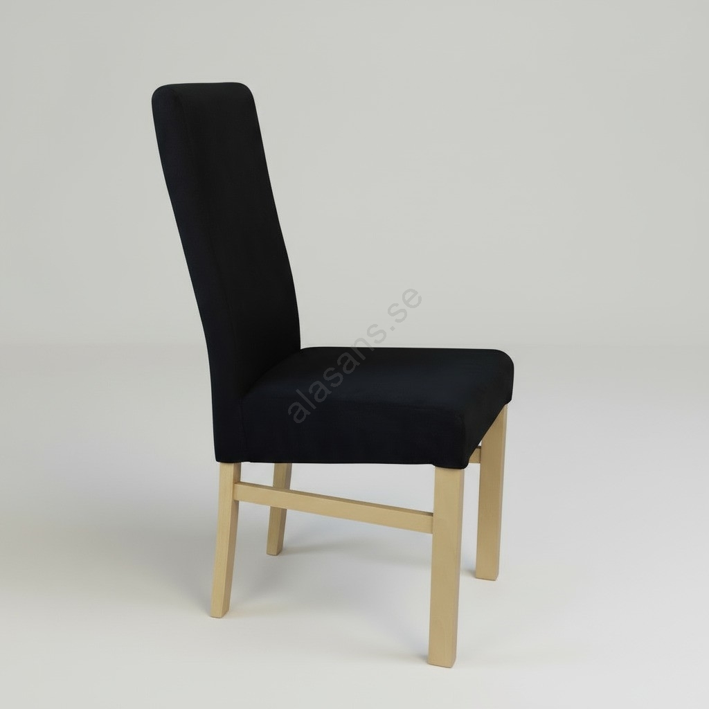 • Ät bekvämt med denna trästol med tygklädd sits och ryggstöd.
