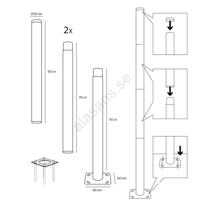 Metallstång till utomhusbelysningsstolpe BASE 4 m, Ø 60 mm, svart | Alasans