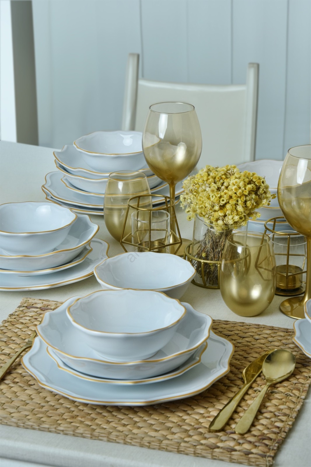 Middagservis 24 delar vit/guld/stengods | Alasans