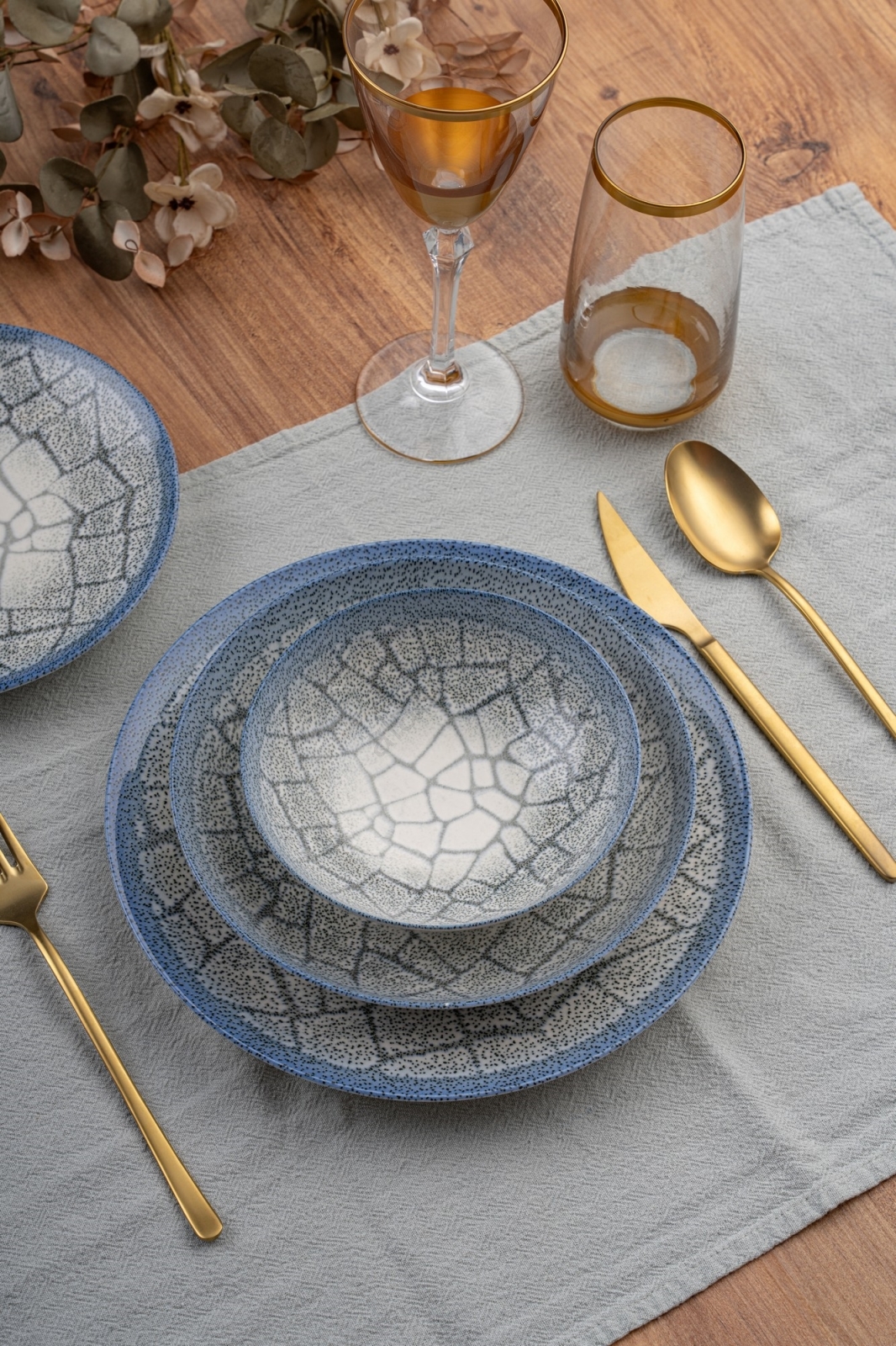 Middagsservis 24 delar blå/porslin | Alasans