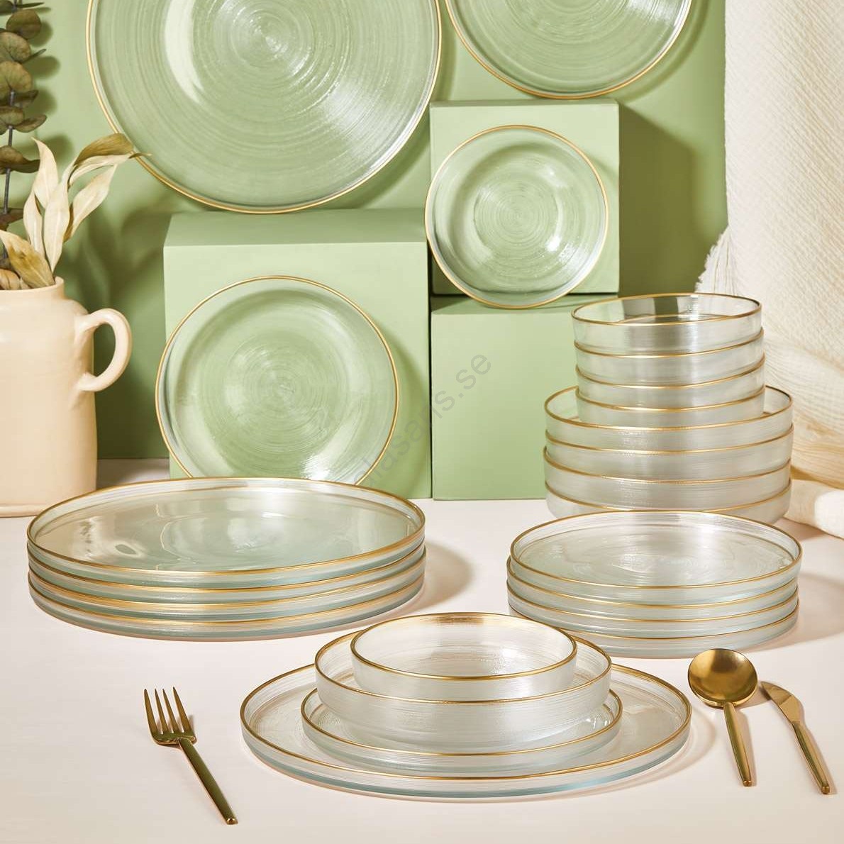 Middagsservis 24 delar klar/guld/glas | Alasans