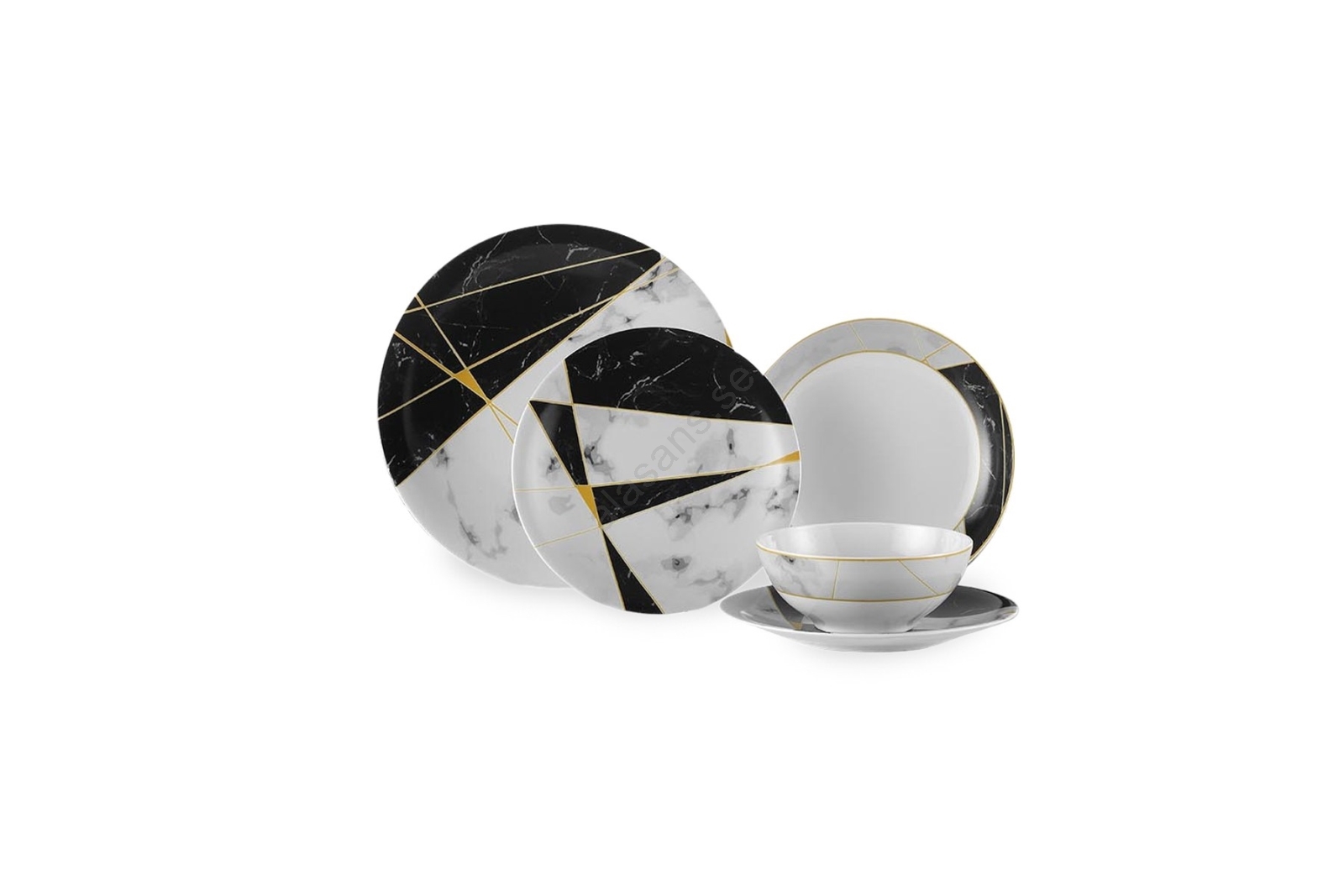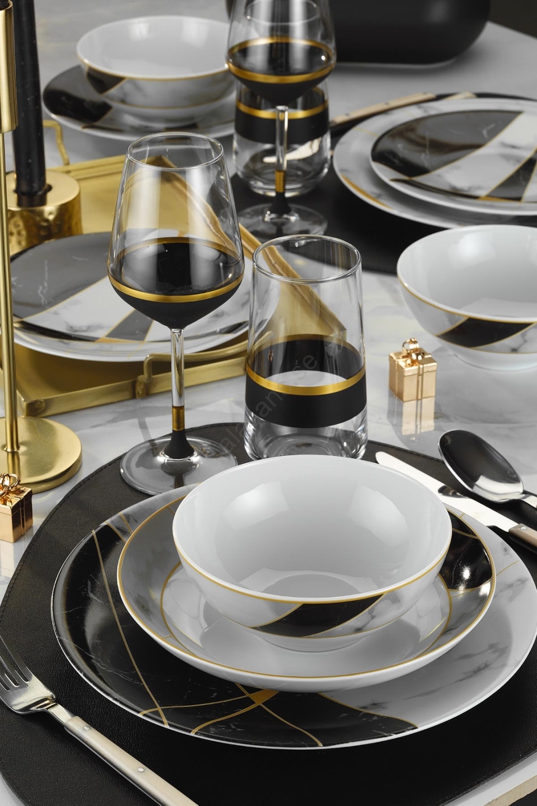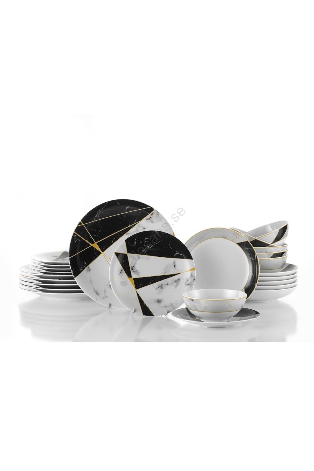 Middagsservis, 24 delar, svart/vit/guld, porslin | Alasans