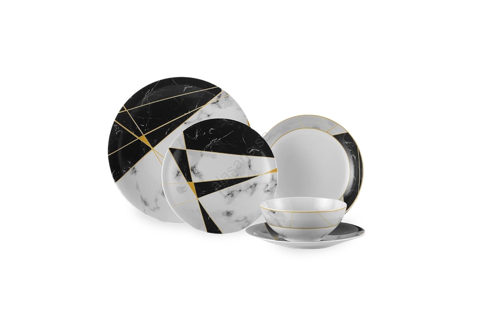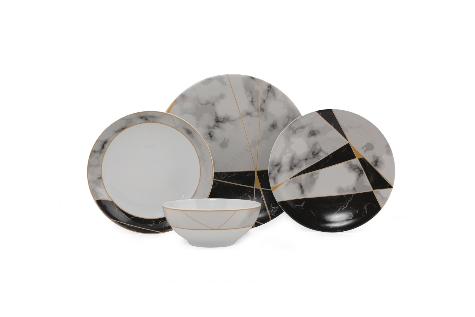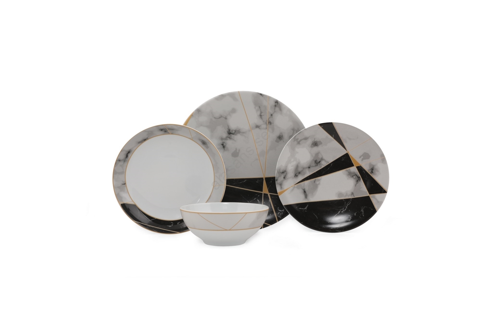 Middagsservis, 24 delar, svart/vit/guld, porslin | Alasans