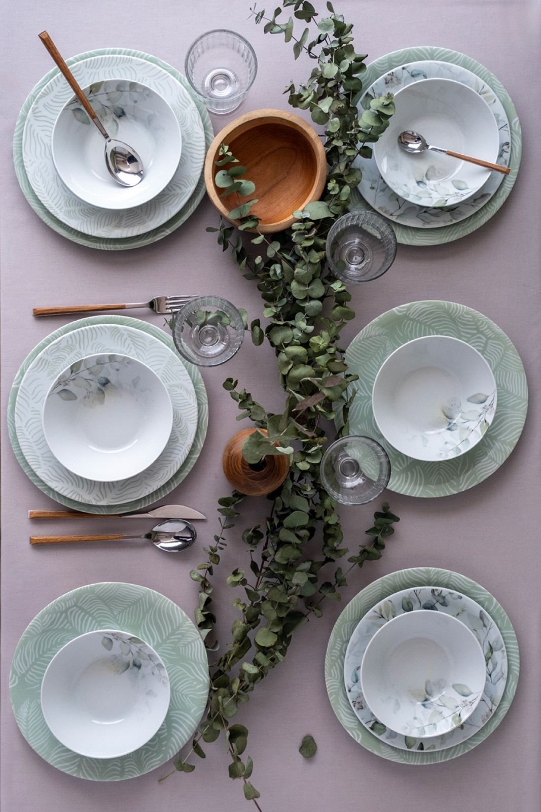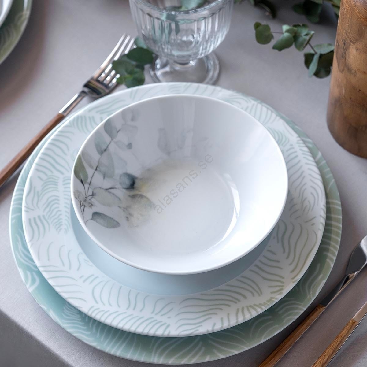 Middagsservis 24 st vit/grön/porslin | Alasans