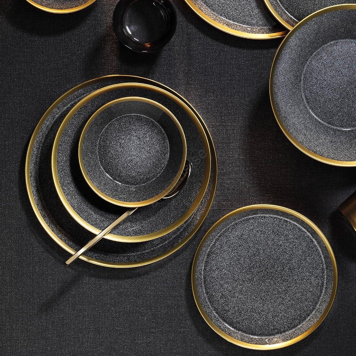 Middagsservis 8 delar svart/guld/porslin | Alasans