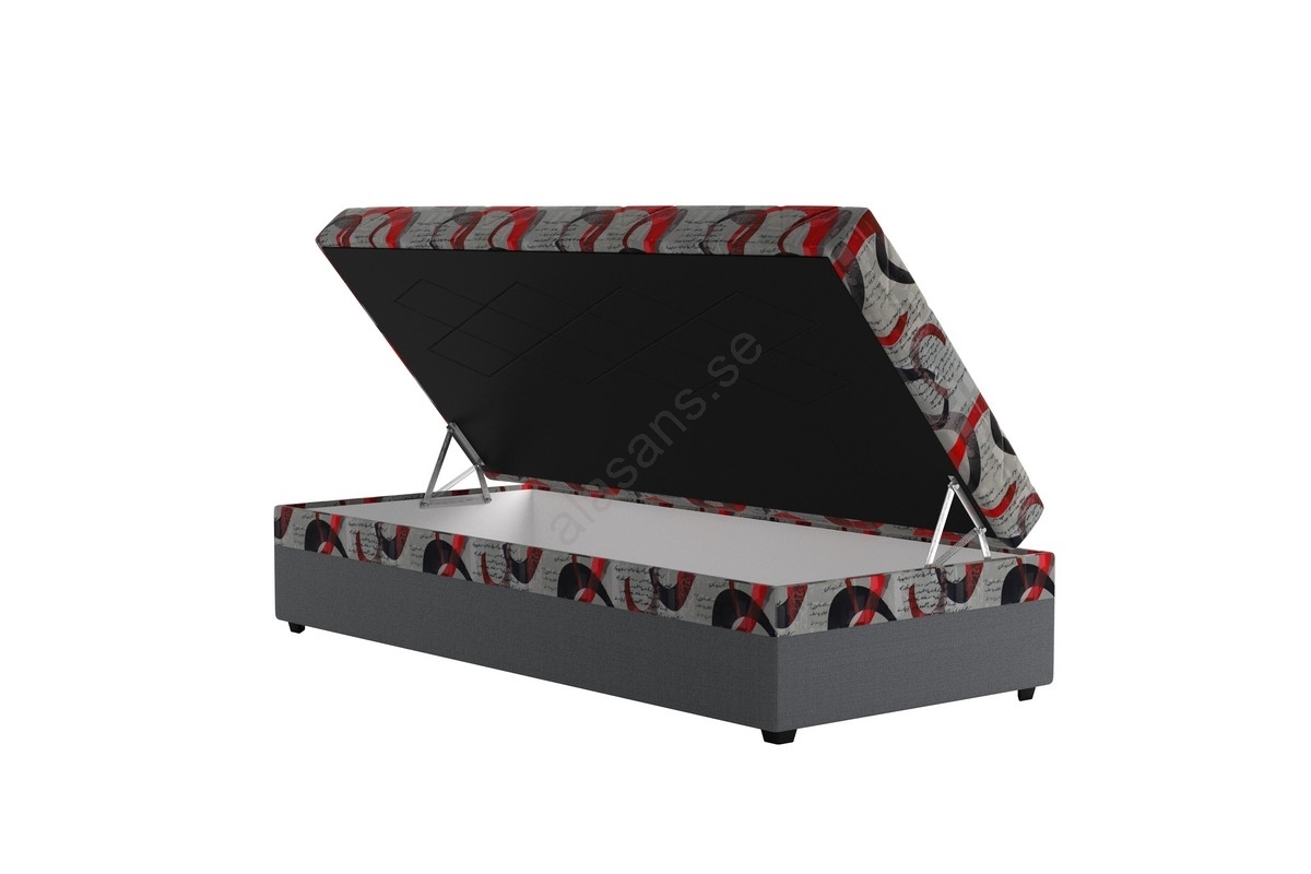 Stoppad enkelsäng med förvaring ESTEL 90x200 cm grå | Alasans