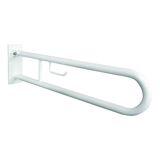 • Fällbart U-format stödhandtag med integrerad hållare för toalettpapper för maximal komfort.