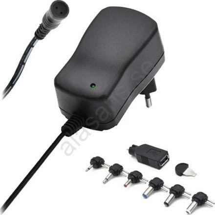 • I paketet ingår ett set utbytbara strömkontakter som omfattar de vanligaste typerna av jackkontakter: 2,5 mm, 3,5 mm, 3,5 x 1,35 mm, 5 x 2,1 mm, 5,5 x 1,5 mm och 5,5 x 2,5 mm.