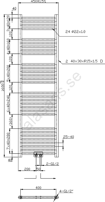 • Rak radiator med centrerad anslutning.