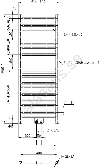 • Rak radiator med mittanslutning.
