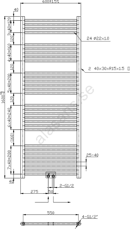 Novaservis - Handdukstork för badrum 544W/230V 160x60 cm blank krom rak | Alasans