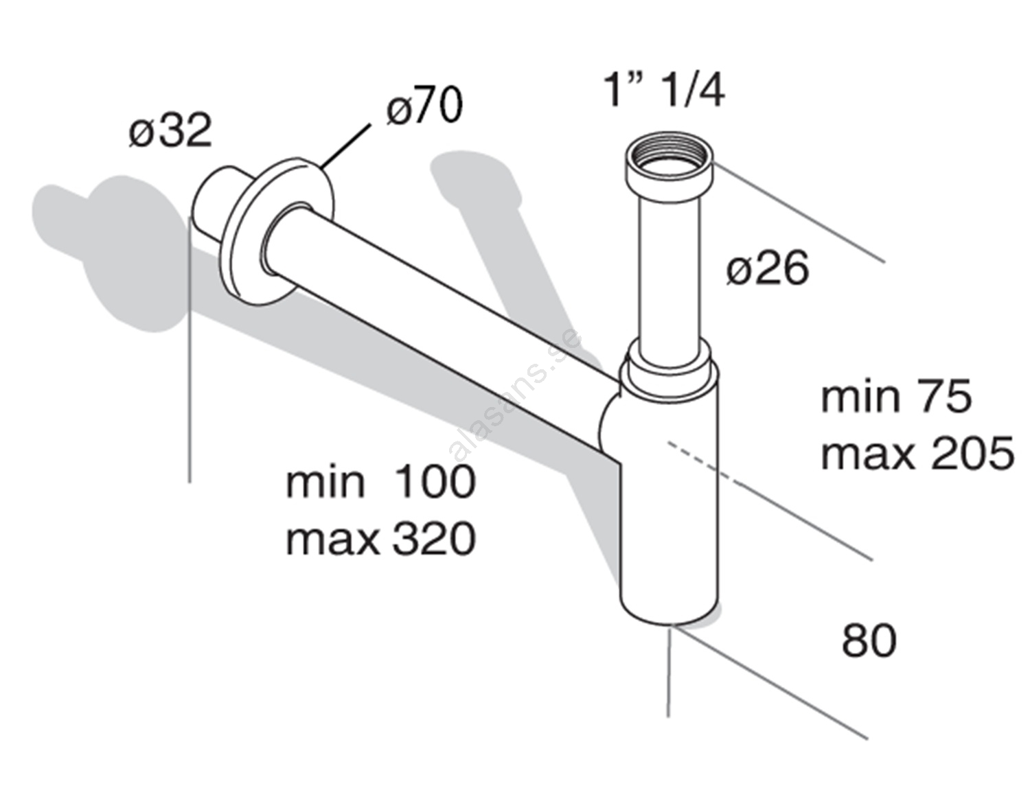 • Avloppsdiametern är 32 mm och gängstorleken 5/4".