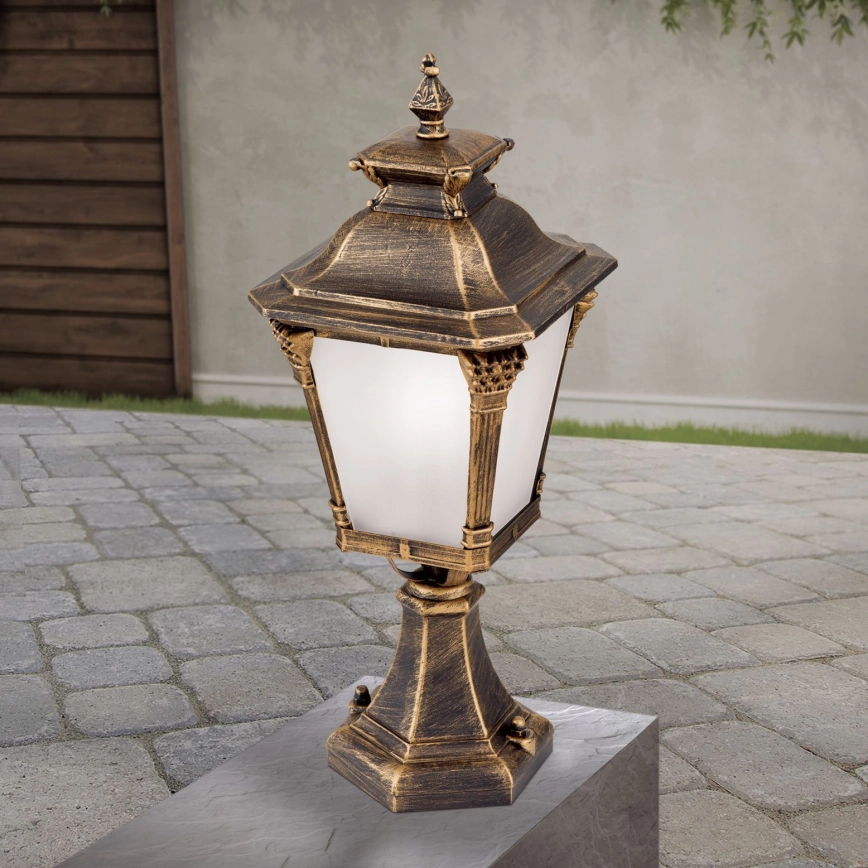 Utomhuslampa AIKO 1xE27/60W/230V 59 cm IP23 brons/patina kännetecknar snygg och funktionell design. En glödlampa med E27 lock är lämplig för lampan. Här kan du köpa andra glödlampor till förmånliga priser. Du kommer att få ett intressant tillägg till ditt hem.
