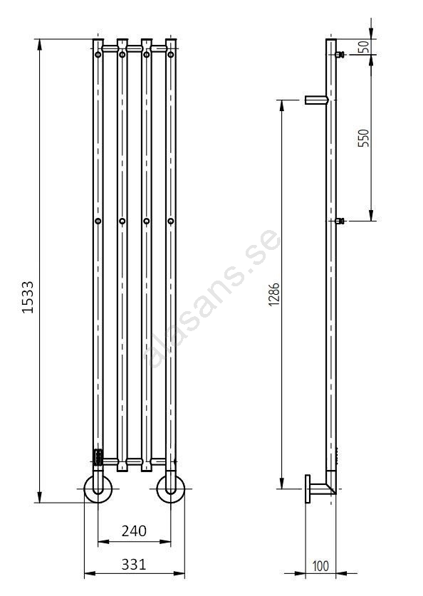 P.M.H. MO1B-RK - Elektrisk handdukstork MONA 93W/230V 153,3 cm IP44 svart | Alasans