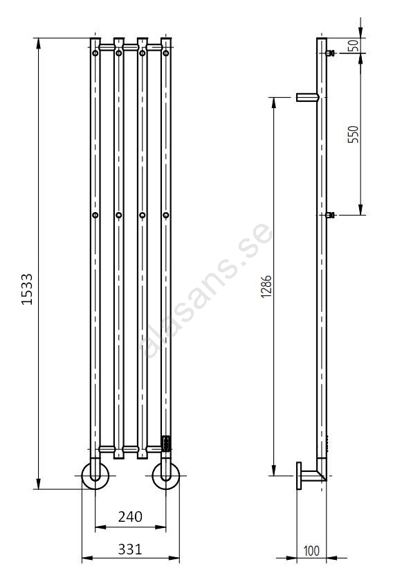 P.M.H. MO1SS-L - Elektrisk handdukstork MONA 93W/230V 153,3 cm IP44 i rostfritt stål | Alasans