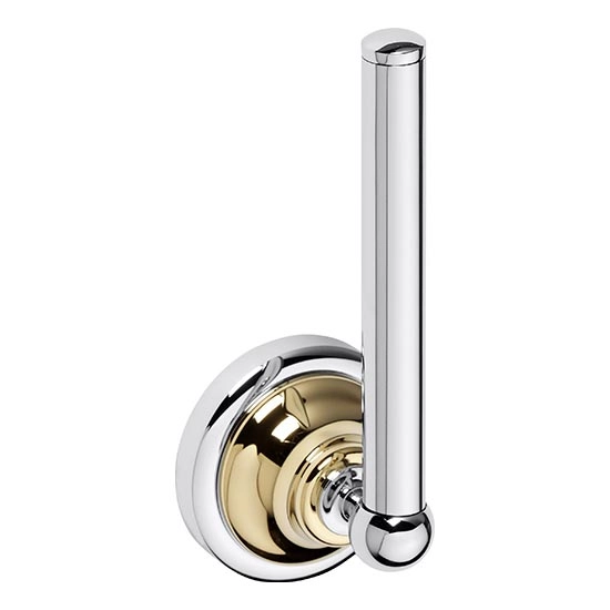 • Elegant hållare för reservtoalettpapper i en kombination av krom och guld.