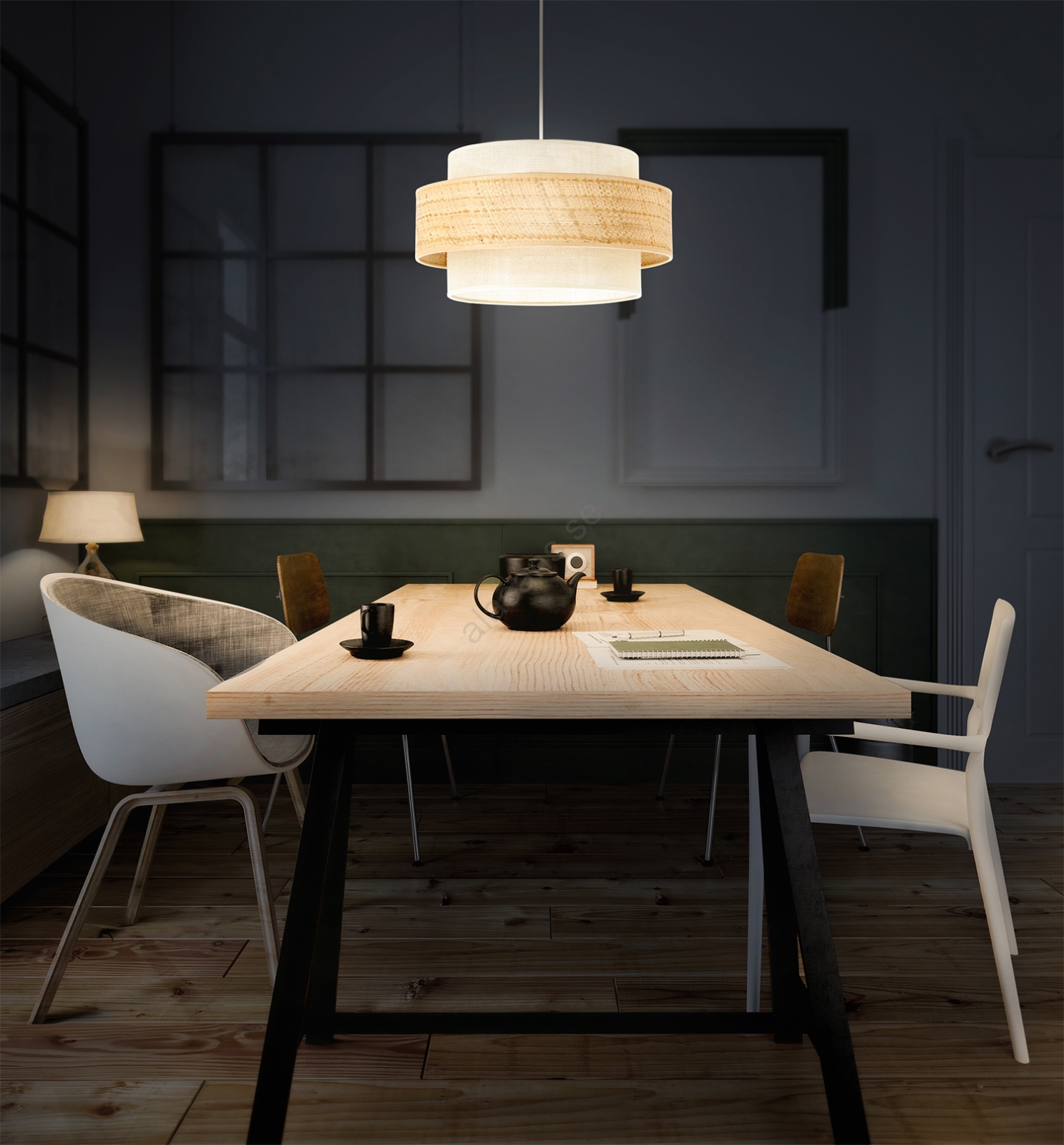 • Takpendel på kabel BOHO 1xE27/60W/230V Ø 40 cm vit/jute
